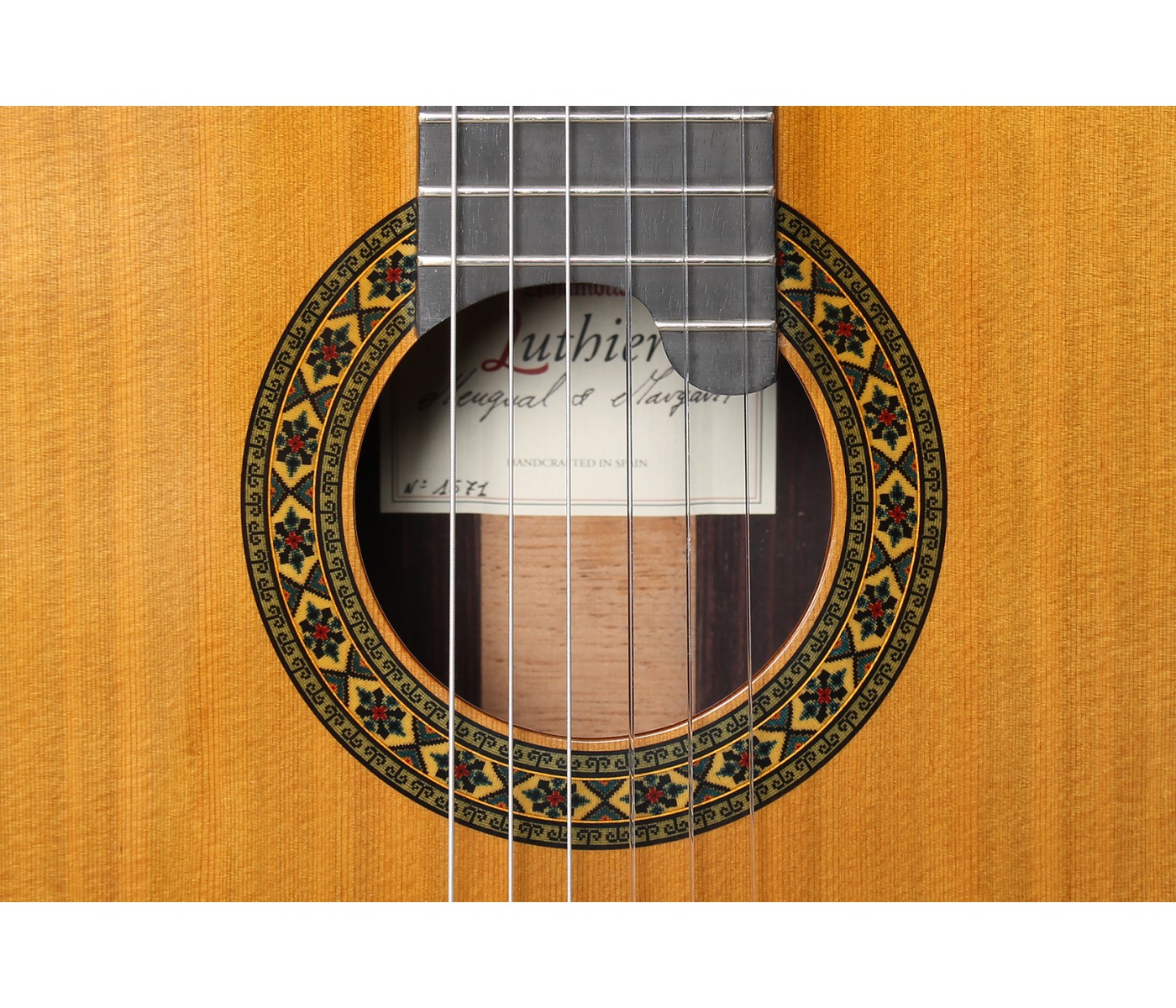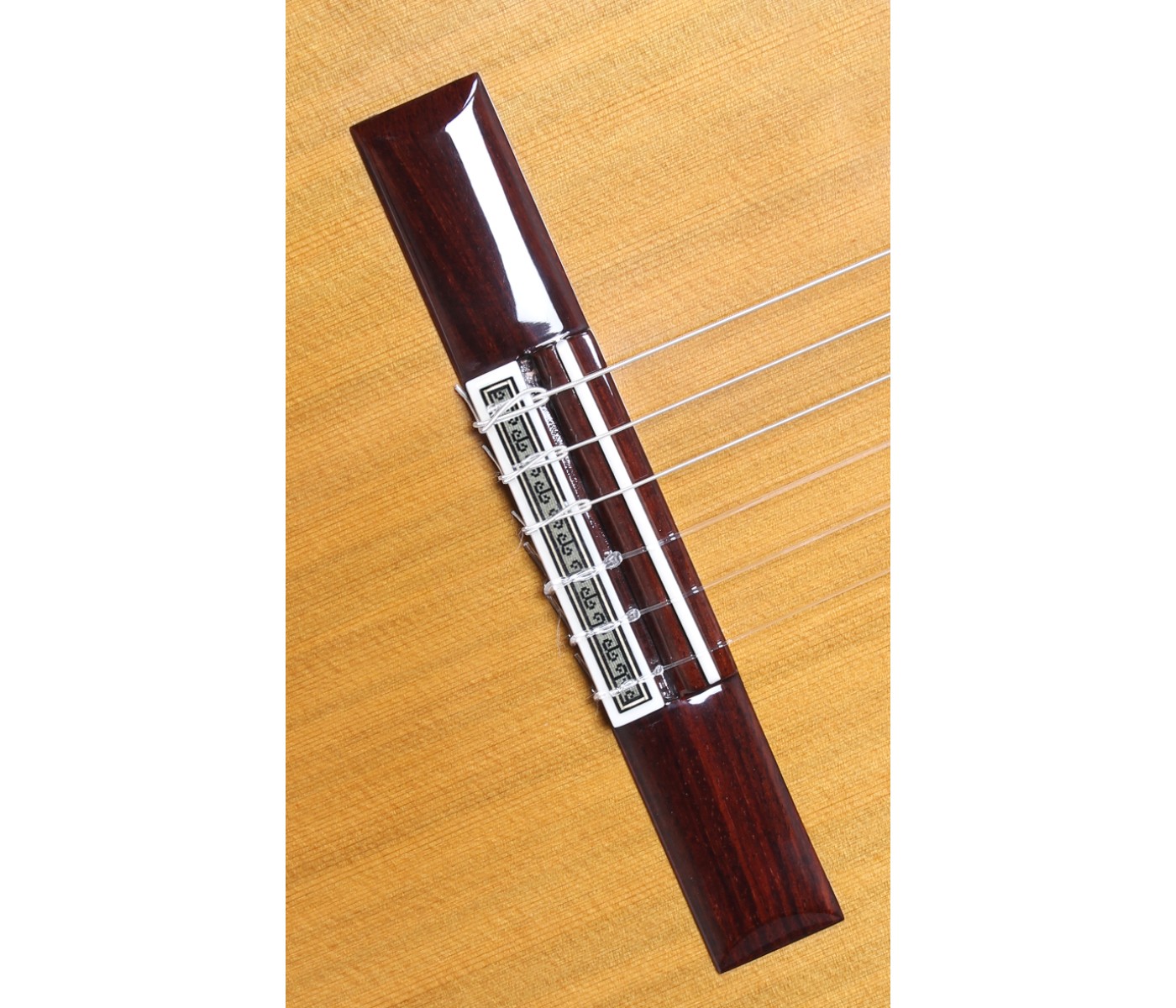 High-quality red cedar has been used for the top, with a gloss finish using Nitro Lacquer or French polish. In the Luthier India model, it is possible to choose French polish for the whole instrument. A type of natural varnish produced by an insect called "coccus lacquer" that provides a high-quality finish. In addition, this varnish generates a thinner layer than the rest of the synthetic varnishes, which contributes to improving the sonorous characteristics.