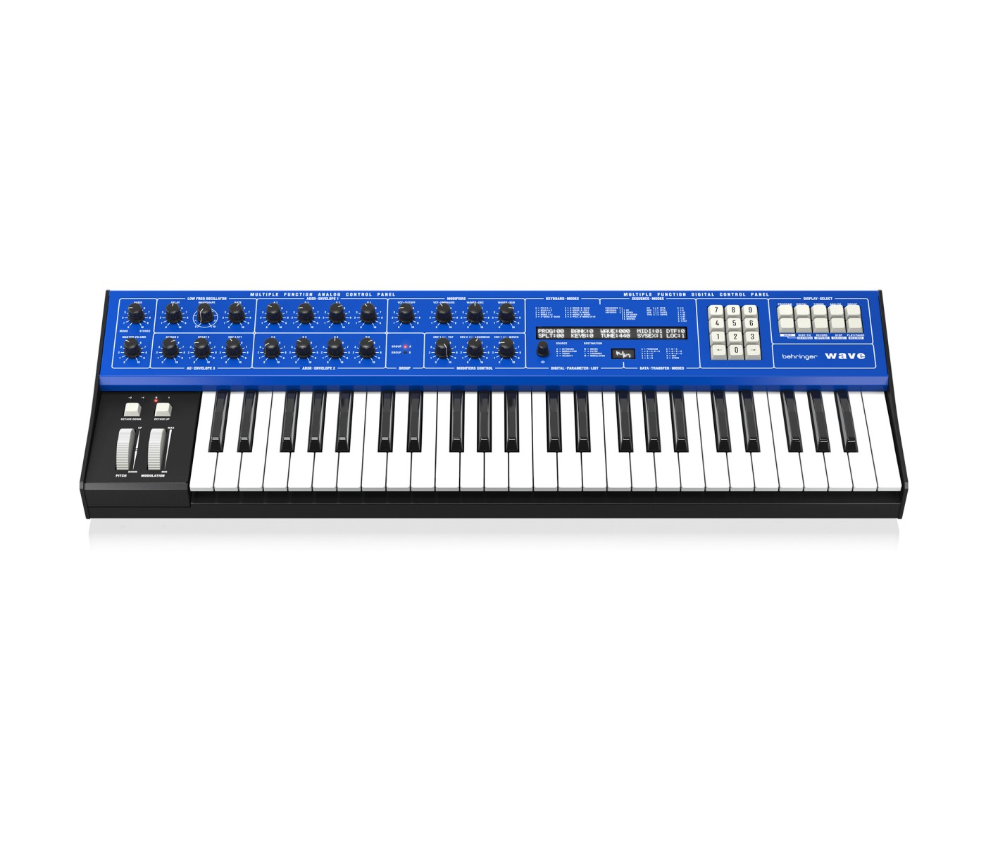 Equipped with 49 full-size velocity- and aftertouch-enabled keys, the Behringer Wave offers authentic wavetable synthesis control paired with a classic analog signal path inspired by the original unit’s VCF and VCA designs.