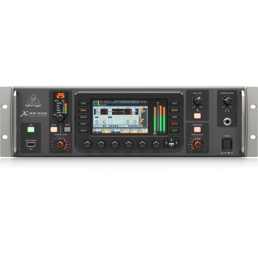 The Behringer X32 Rack will change the way you think about digital mixers. It's packed with the comprehensive control and sound quality you want, such as audiophile-quality mic preamps, but all controls are accessible via your mobile device as this racked X32 has no faders. Every aspect of your mix can be adjusted using the controls on the front of the unit and viewed on the high-resolution 5-inch color TFT, and engineers love how Behringer's free iPad and iPhone apps provide total remote operation with no host computer required. You can even use inexpensive CAT 5 cable to run your I/O. Embrace the future of live mixing with the Behringer X32 Rack.