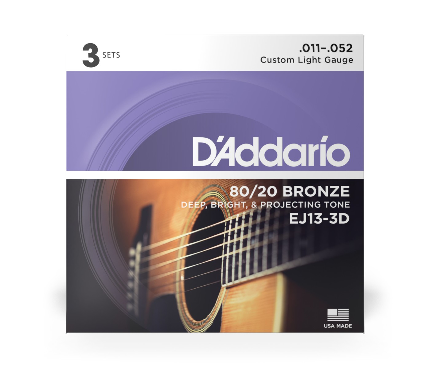 D'Addario EJ13-3D 80/20 Bronze Acoustic Guitar Strings, Custom Light, 11-52, 3 Sets  D'Addario EJ13-3D 80/20 Bronze Acoustic Guitar Strings, Custom Light, 11-52, 3 Sets