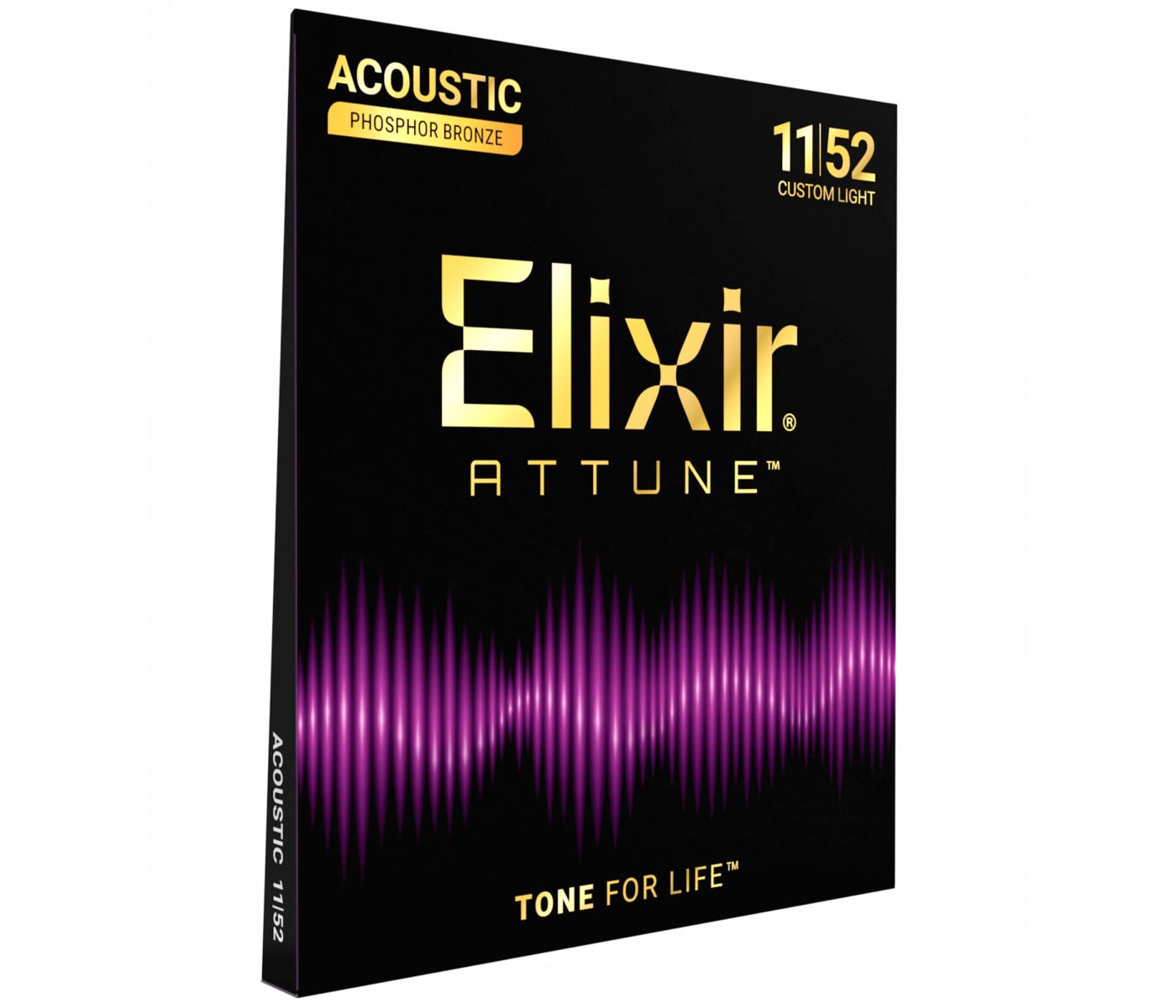 Elixir Strings 21027 Attune Phosphor Bronze Acoustic Guitar Strings Custom Light - .011-.052