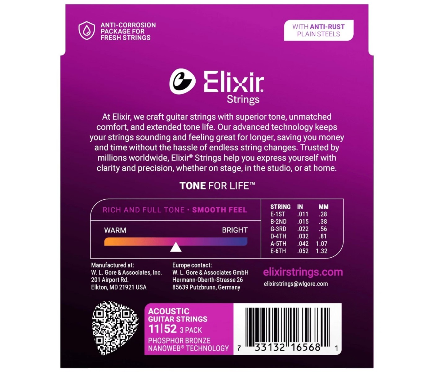 Guitar Type: Acoustic Guitar Number of Strings: 6 Coated: Nanoweb Coating Gauges: .011, .015p, .022w, .032, .042, .052 Core Material: Steel Winding Material: Phosphor Bronze Winding Type: Round Wound