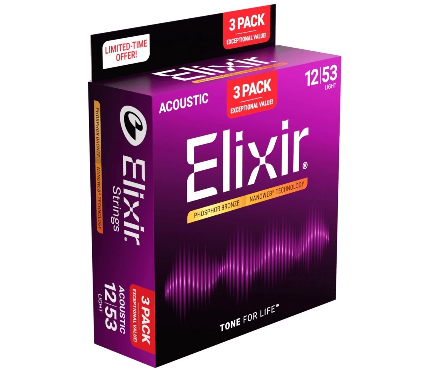 Elixir Strings 16052 Nanoweb Acoustic Guitar Strings Light - .012-.053 ( 3Pack)