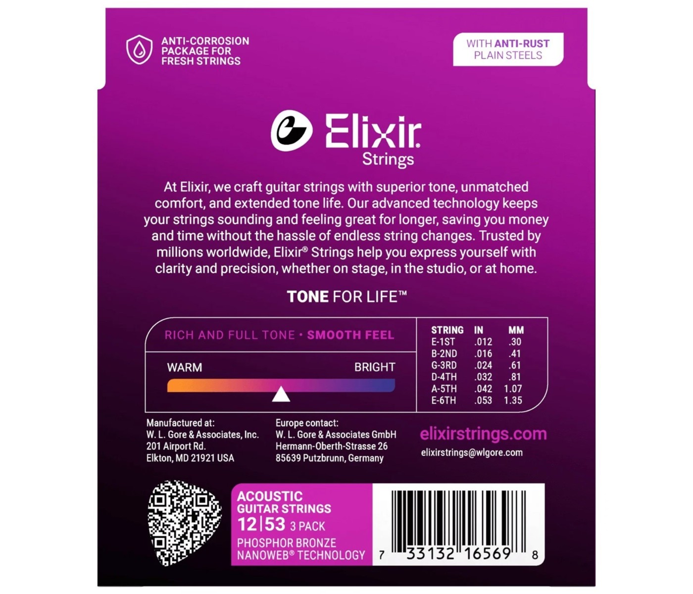 Guitar Type: Acoustic Guitar Number of Strings: 6 Coated: Nanoweb Coating Gauges: .012, .016p, .024w, .032, .042, .053 Core Material: Steel Winding Material: Phosphor Bronze Winding Type: Round Wound