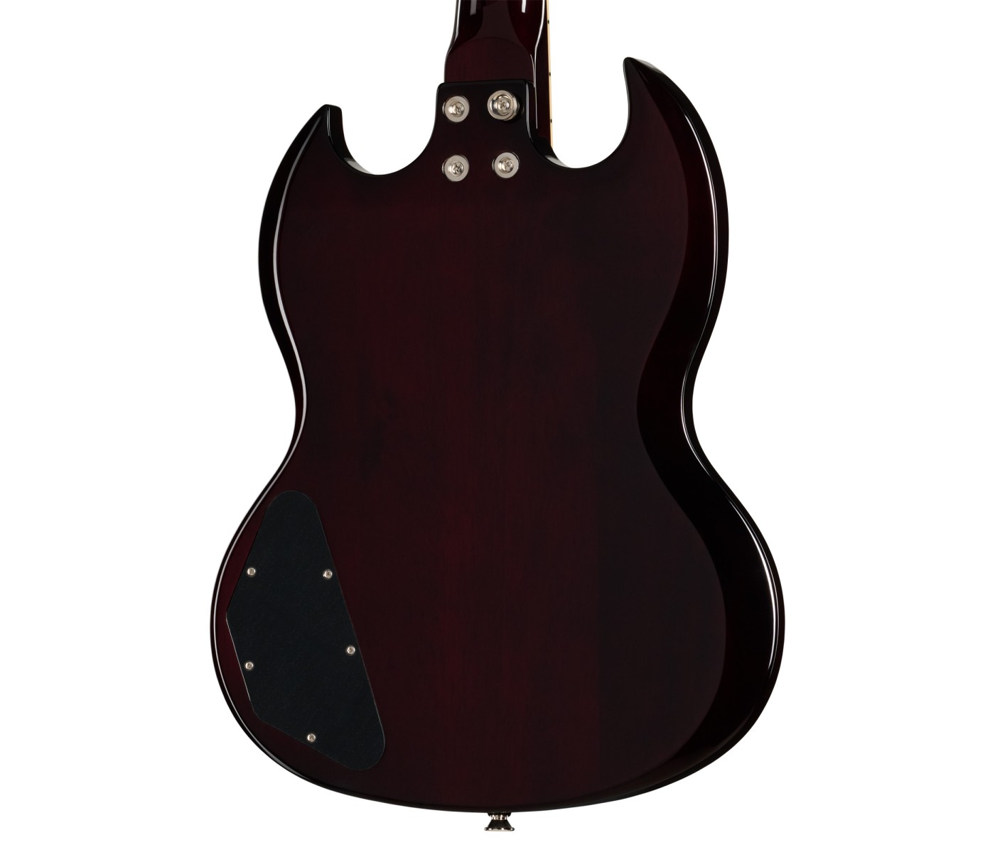 The 60s Kalamazoo-style headstock houses sturdy die-cast tuners for reliable tuning stability. Hardware includes the Epiphone LockTone™ Tune-O-Matic bridge and LockTone Stop Bar tailpiece, ensuring excellent sustain and easy setup. Tonally, the SG Tribute Plus is powered by a pair of Epiphone humbuckers™ — an Epiphone 650R (neck) and Epiphone 700T (bridge) — loaded with ceramic magnets for a full-bodied, powerful tone suited to any genre. Elevating the Tribute Series with enhanced tone, playability, and visual appeal, the Epiphone SG Tribute Plus is an ideal choice for your first serious electric guitar or as a step-up instrument that delivers professional performance without breaking the bank. An optional Epiphone gig bag or hardshell case is available separately at Sadek Music.