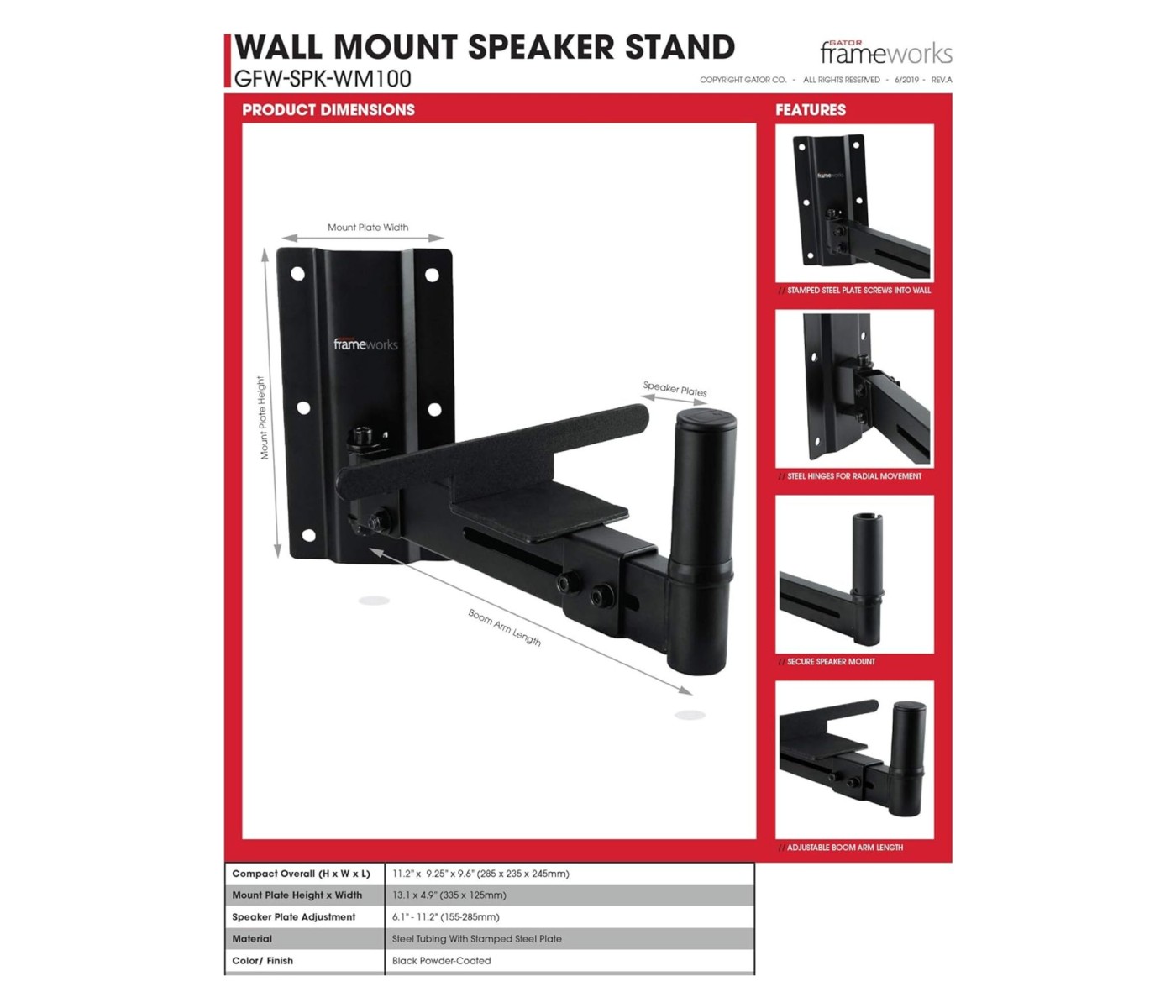 Gator Frameworks GFW-SPK-WM100 Wall Mount Speaker Stands - Pair