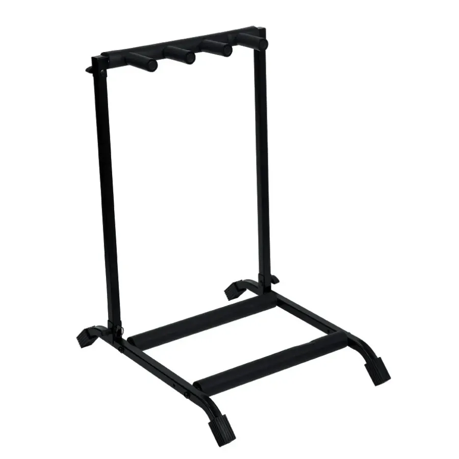 Rok-It collapsible, folding guitar rack designed to hold 3x electric or acoustic guitars. Foam padded support to protect guitar.
