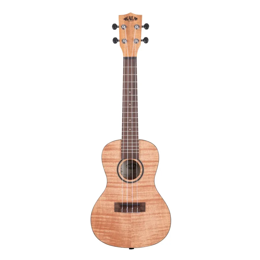 The traditional look of the Exotic Mahogany line is complemented by the unique grain patterns. The woodgrains range in variety from a wavy curl to a straight sharpness and everything in between. Sadek Music presents the Kala Exotic Mahogany Ukulele, a stunning instrument that blends traditional aesthetics with unique wood grain patterns. The Exotic Mahogany showcases a diverse range of natural wood grains, from wavy curls to sharp, straight lines, making each ukulele truly one of a kind.
