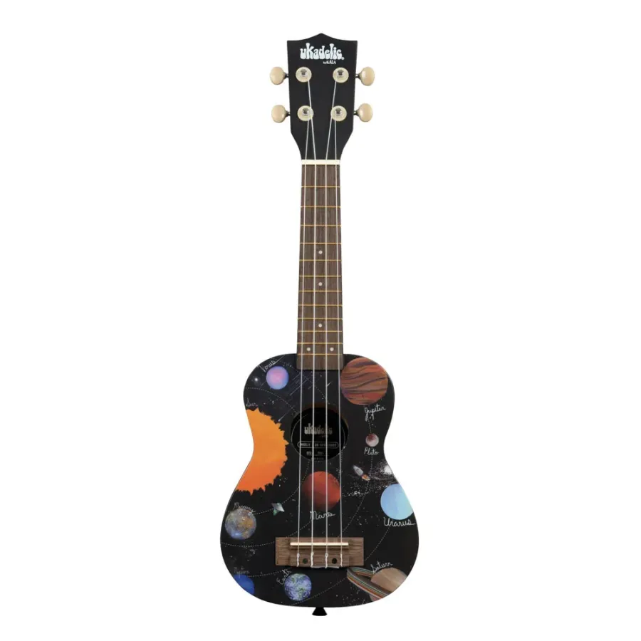 How do you fit our entire Solar System on a soprano ukulele? It’s no small feat, but the Kala team took on the challenge, drawing inspiration from several contest entries to create the stunning Spaced Out Ukadelic®. Featuring a racing rocket, a mysterious UFO, and a vibrant arrangement of planets and stars, this ukulele brings the cosmos to life with its fun, colorful artwork. No need to be a rocket scientist to play this one—just grab your uke and start exploring the galaxy! Available now at Sadek Music, where musical adventures begin!