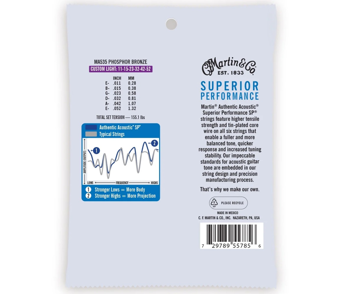 Martin Authentic Acoustic Superior Performance 92/8 Phosphor Bronze Guitar Strings - .011-.052 Custom Light