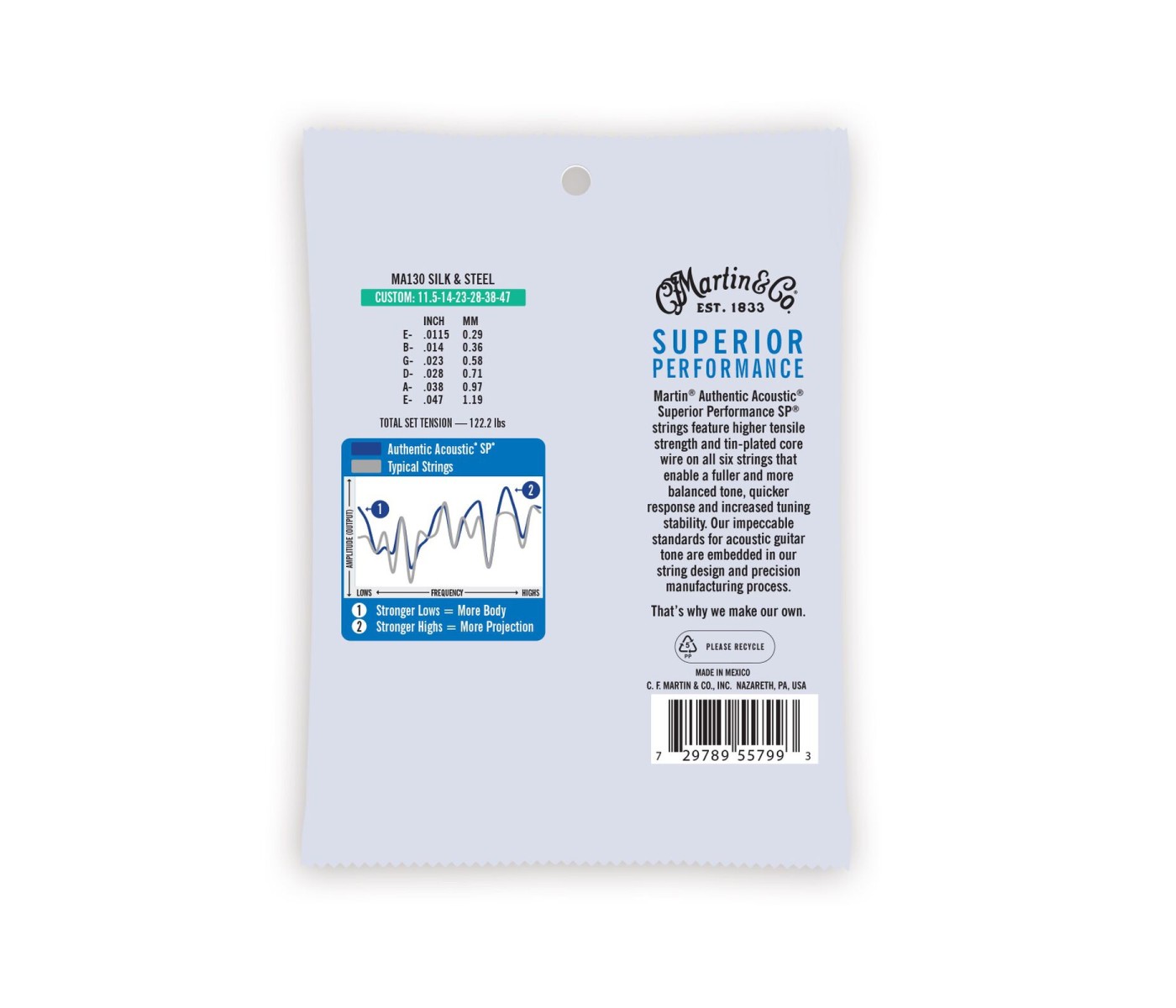 Martin Authentic Acoustic SP® strings offer excellent tuning stability, corrosion resistance and great playability.