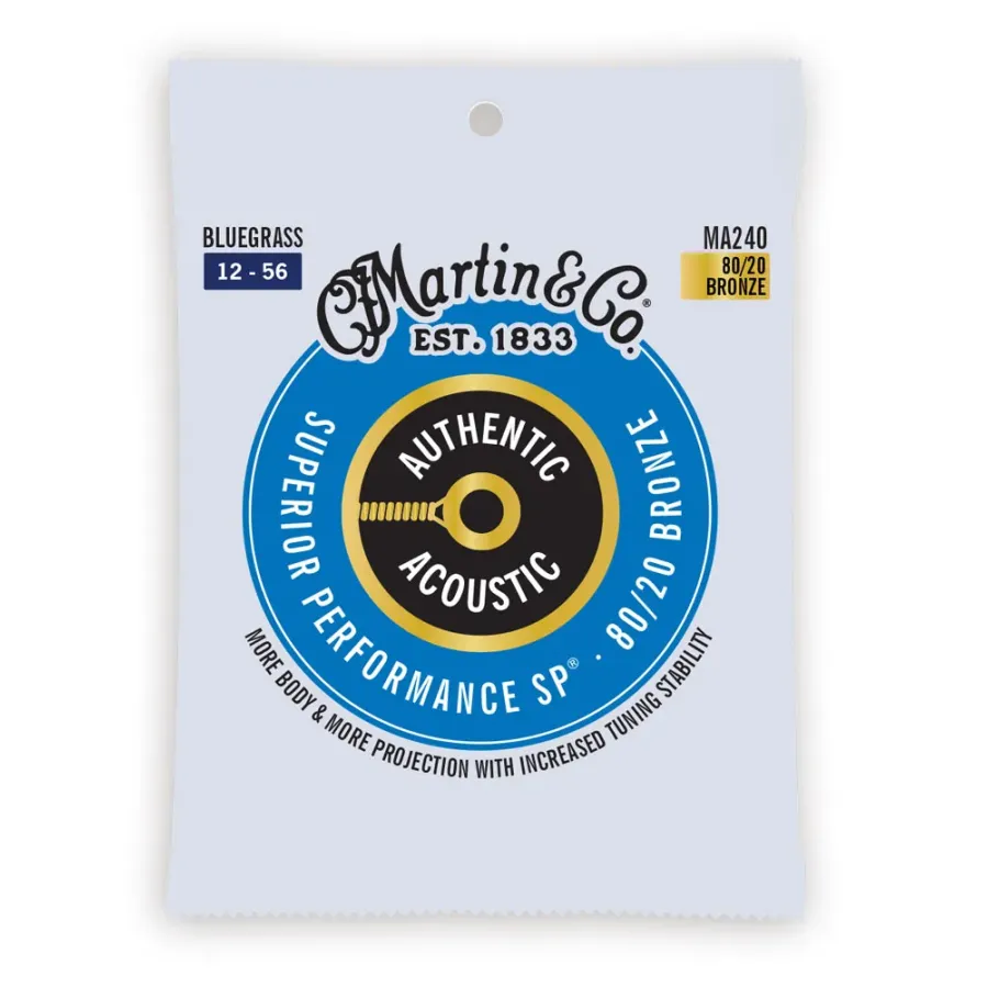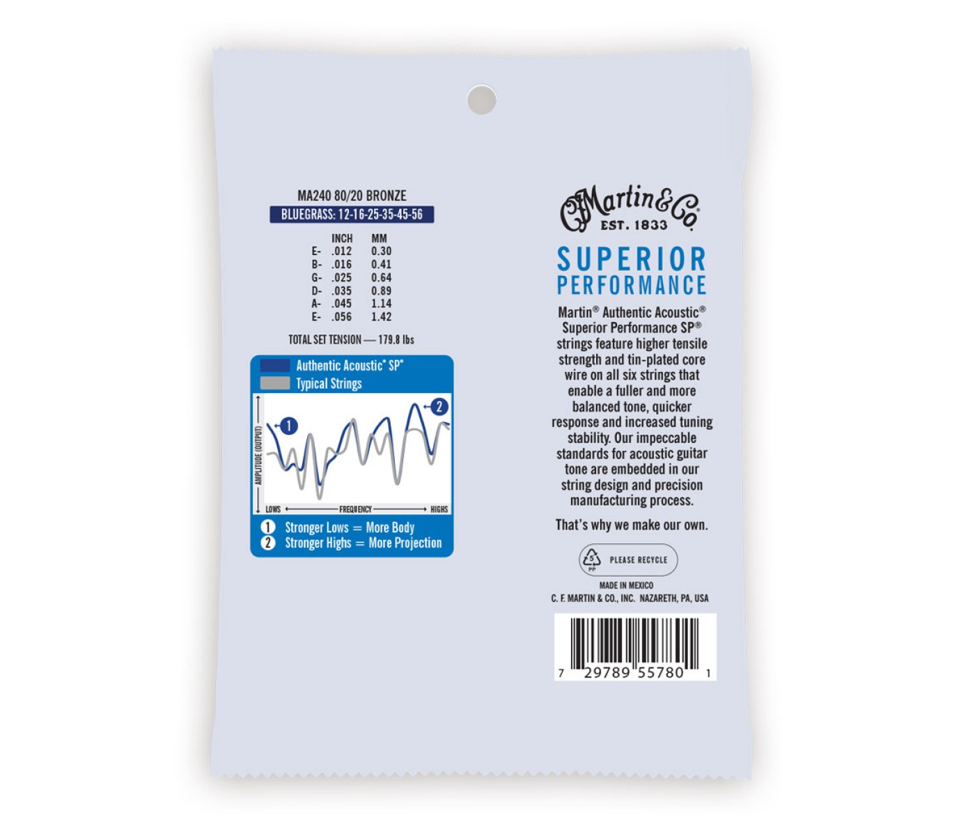 Martin Strings MA240 Authentic Acoustic Guitar Set Superior Performance 80/20 Bronze Bluegrass - .012-.056