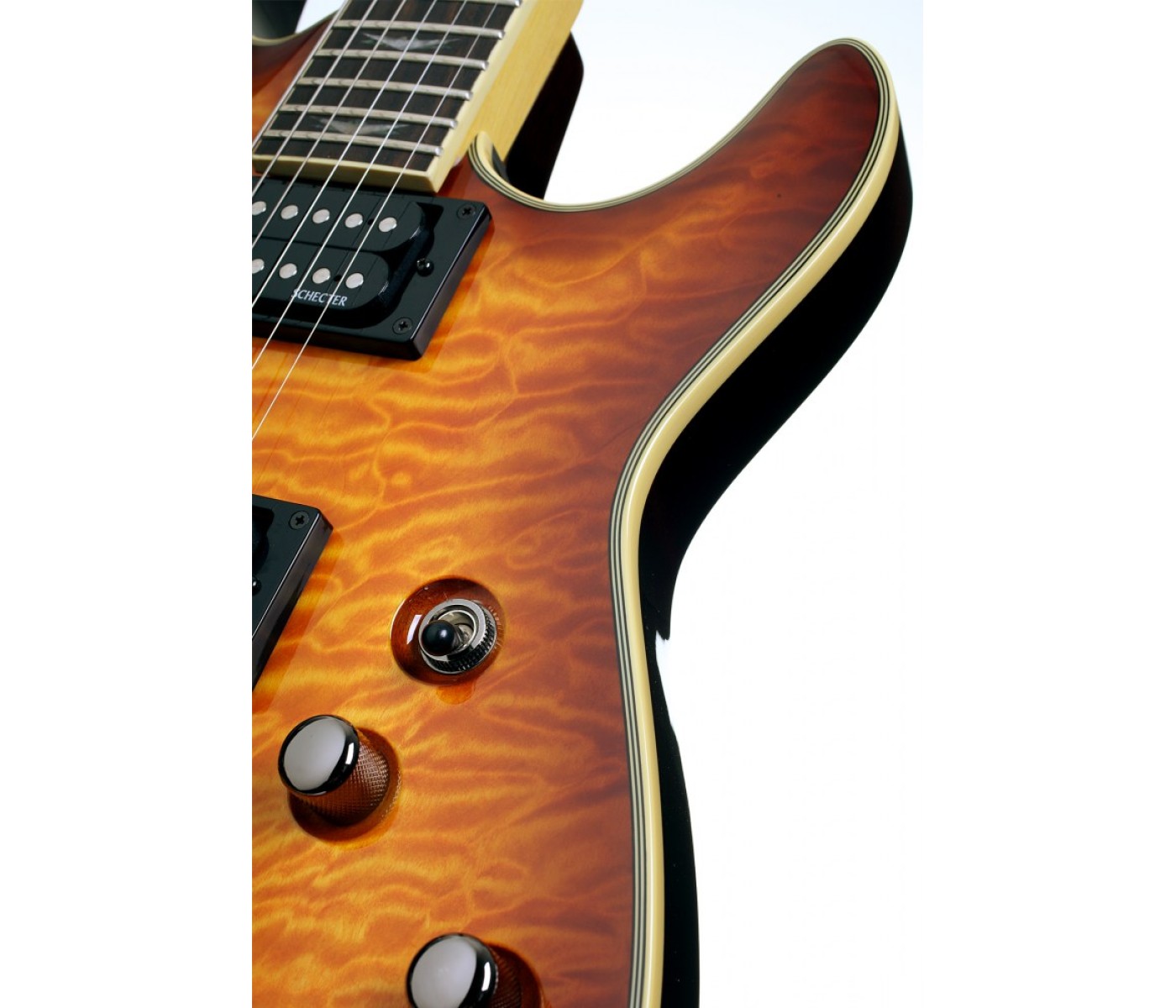 Equipped with Schecter Diamond Plus humbuckers, the Omen Extreme-6 delivers powerful, articulate tones that can handle anything from heavy riffs to soaring solos. The Tune-O-Matic bridge ensures excellent tuning stability, so you can focus on your playing without worrying about intonation or tuning issues at Sadek Music, your trusted source for high-quality Schecter guitars, the Schecter 2024 Omen Extreme-6 in Vintage Sunburst offers exceptional performance and style at an unbeatable price. It's the perfect instrument for guitarists who want a guitar that looks as great as it sounds.