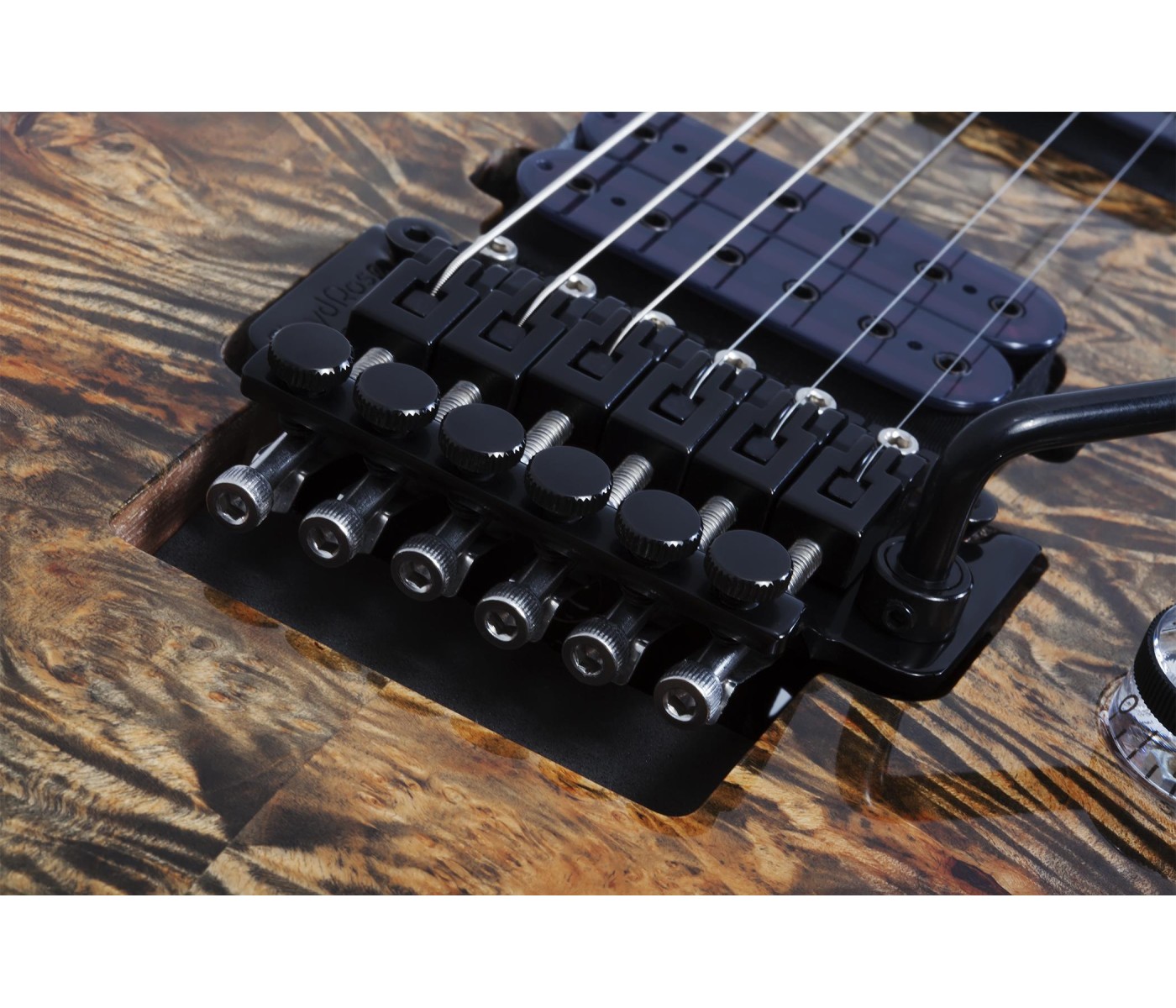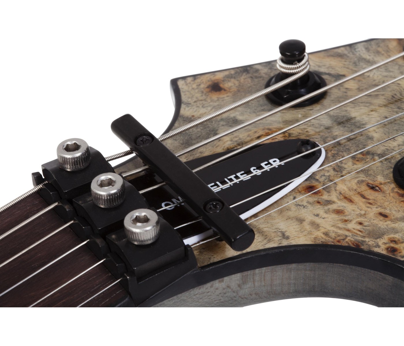 Equipped with Schecter Diamond Heretic humbuckers, the Omen Elite-6 FR delivers powerful, high-output tones that are ideal for rock, metal, and shred playing. The Floyd Rose Special locking tremolo system provides tuning stability and allows for deep dive-bombs and expressive pitch shifts without losing precision.