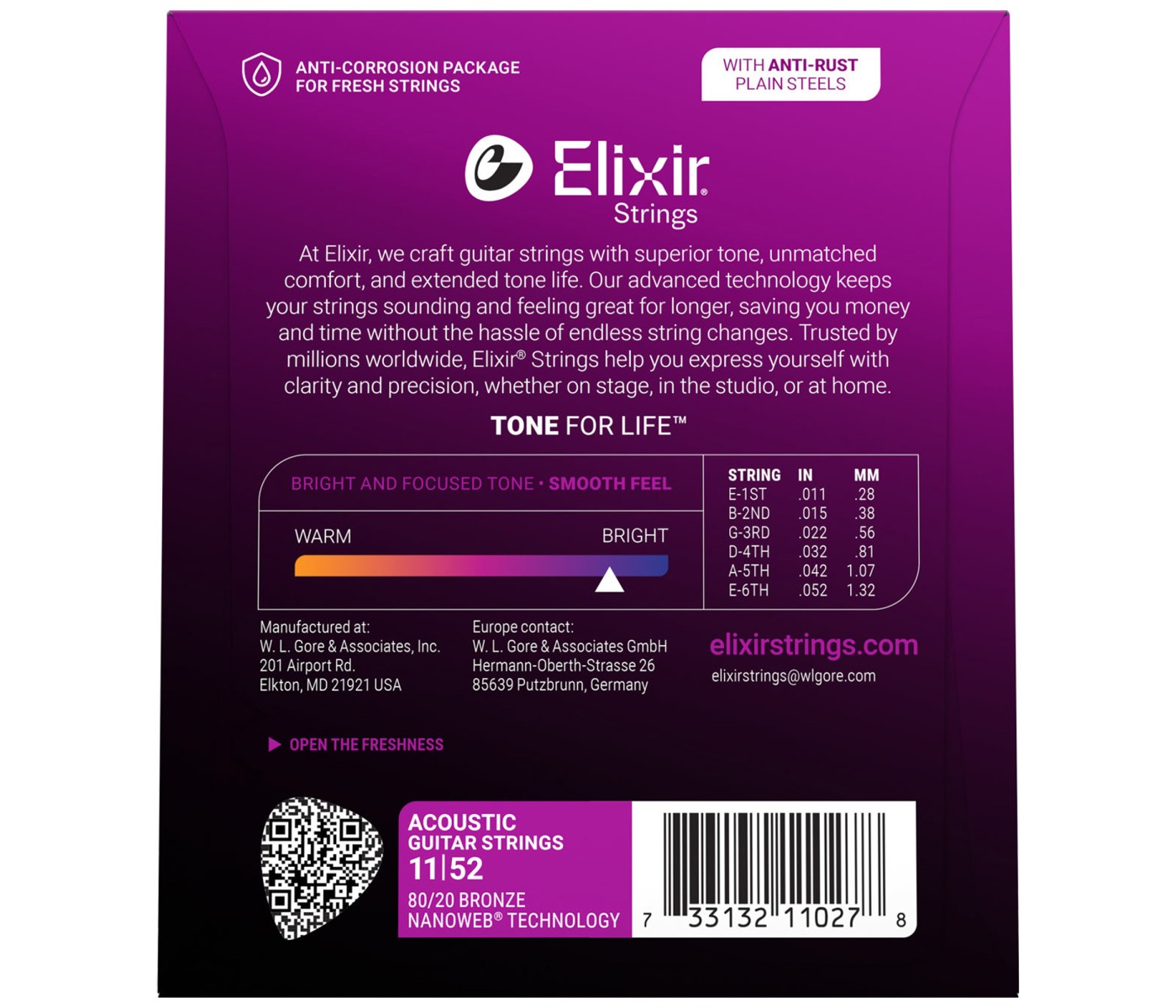 Elixir Acoustic Nanoweb strings don't just sound great, their micro-thin coating keeps them sounding better for a lot longer than average strings. If you want to keep your guitar tone consistently great day in and day out, put on a set of Elixir Acoustic Nanoweb strings. Their coating actually cuts down on unnecessary finger friction. You'll be amazed at how long they last! Fewer string changes means having to buy strings less often.80/20 bronze brings out full-range sound