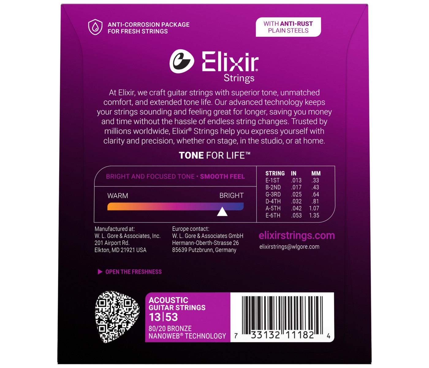 Elixir Nanoweb 80/20 Bronze Acoustic Strings Features: