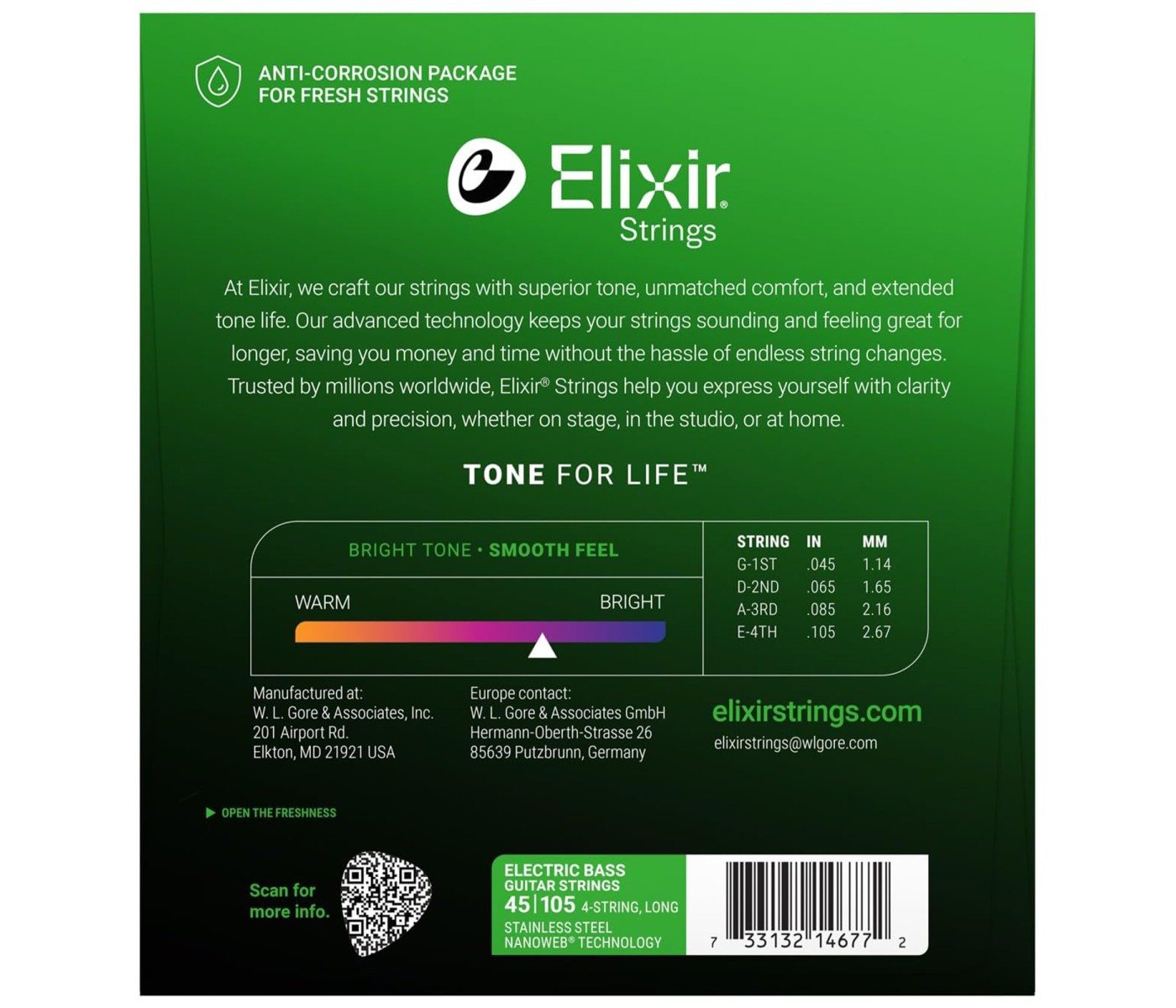 Elixir's Nanoweb Bass Strings are the perfect string for anyone who likes the punch of an uncoated string but the feel and long life of a coated one. By using their amazingly effective yet micro-thin Nanoweb coating, Elixir designed a bass string that delivers both great feel and awesome sound. Bassists have found Nanoweb Bass strings also retain their powerful edge for a lot longer than traditional bass strings. Think about it: if you don't have to buy strings as often, then that means more money left over for other gear!Elixir Nanoweb 4-String Long Scale Electric Bass Strings Features: