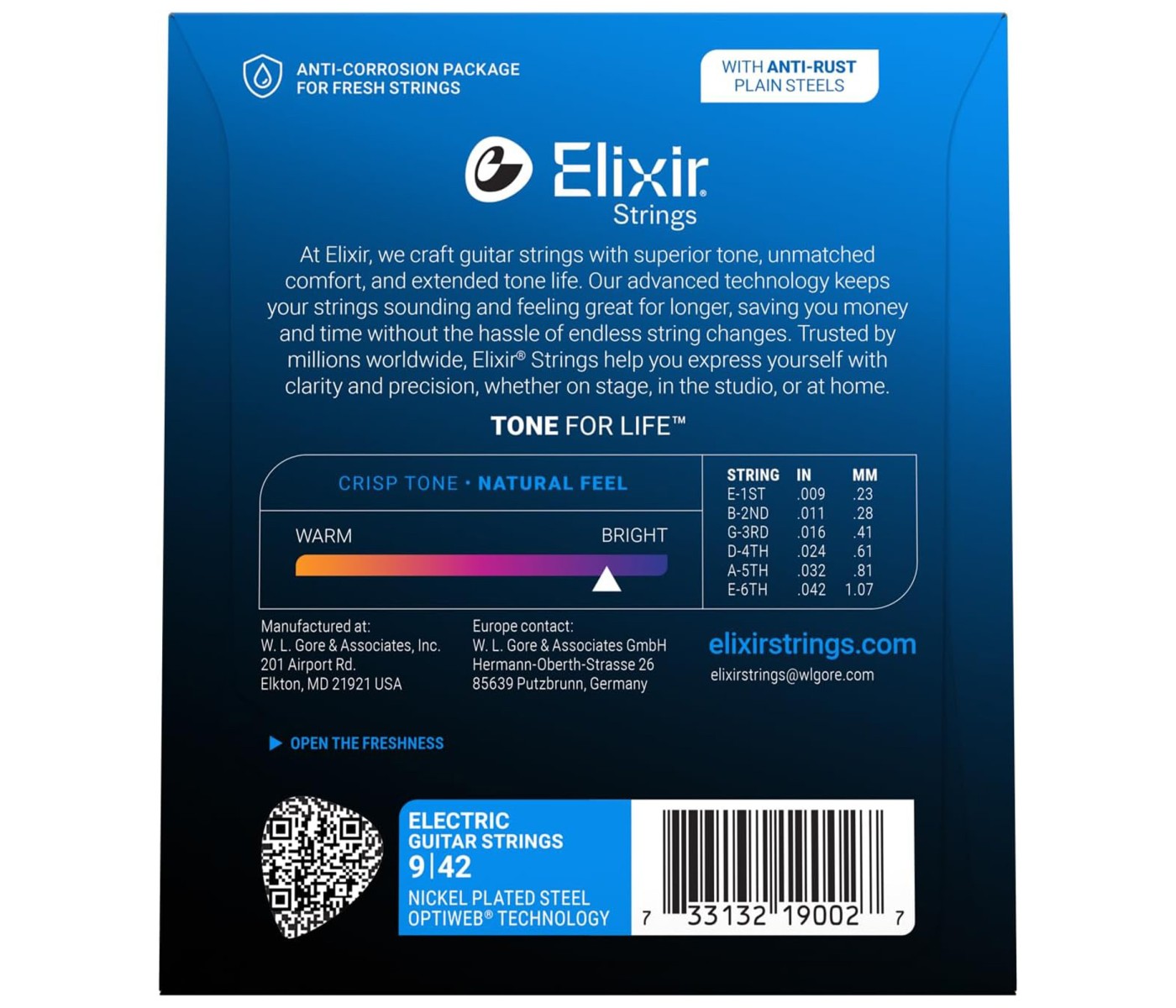 Elixir Electric Optiweb Super Light-gauge Strings Features:
