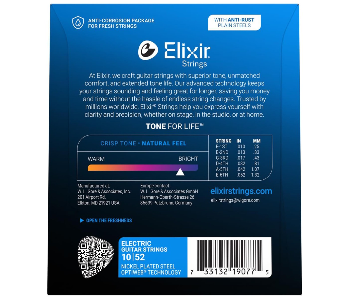 Elixir Strings 19077 Electric Guitar Strings Optiweb Light/Heavy - .010-.052