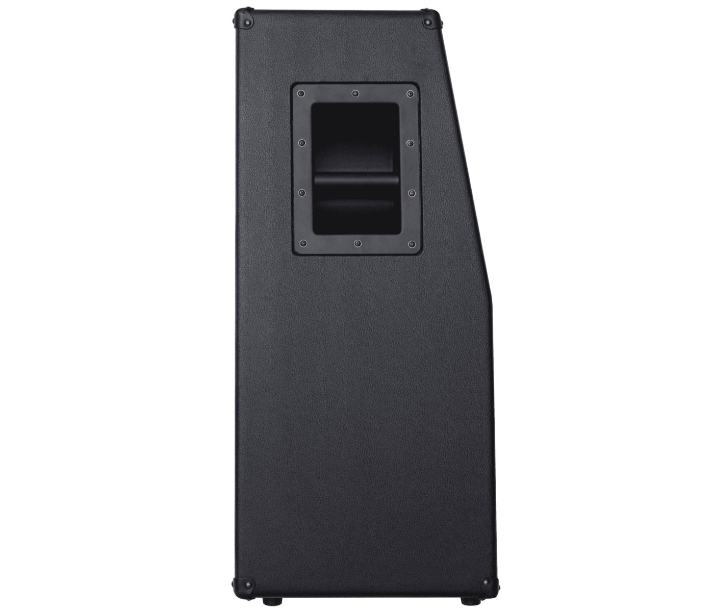 The slant of the top speaker in the 2x12" vertical design allows to spread out more the sound than with the more common flat-front 2x12 cabs and to maintain the low-end you get from keeping the cabinet on the floor, but also keeps one speaker aimed at ear-level for onstage clarity of the mids and highs. The split-stack vertical design is perfect for stereo setup, allowing to have a real stereo panorama, utilizing one for each side.