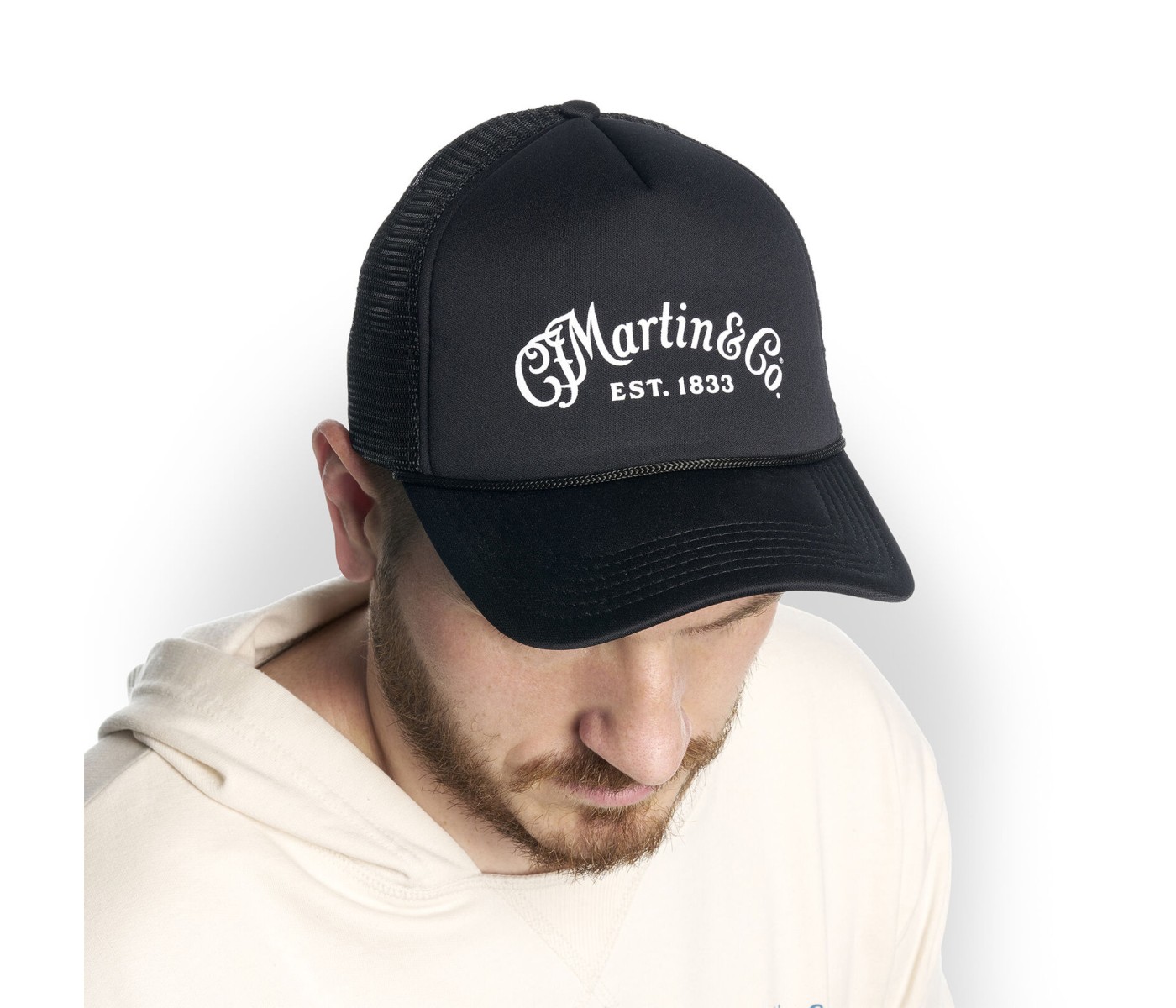 Show off your love for acoustic excellence all year round with the Martin Classic Trucker Hat, available now at Sadek Music. This sleek, stylish cap blends classic and contemporary design with its tailored profile and a subtle rope accent atop the curved visor. Crafted from 100% polyester foam in the sculpted crown and breathable mesh in the back, the hat strikes the perfect balance between comfort and ventilation. Its durable 5-panel construction and strong stitching mean it’s built to last, while the adjustable snap-tab closure ensures a perfect fit for virtually any head. Whether on stage or off, the Martin Classic Trucker Hat adds effortless swagger to your look.