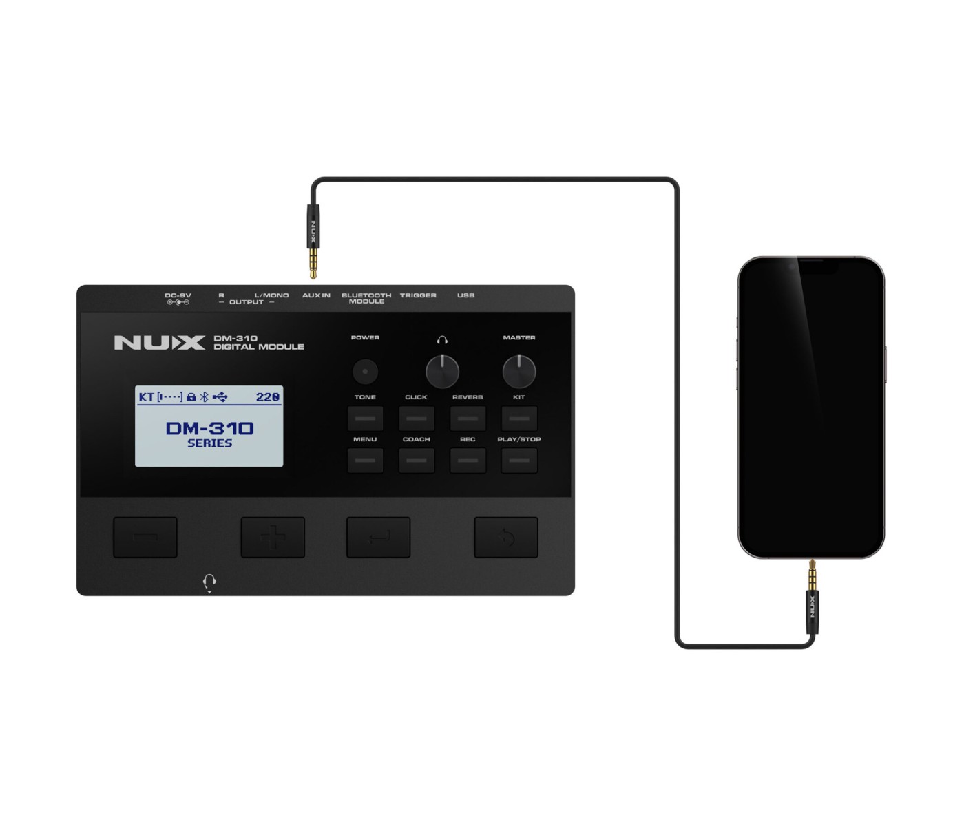 Recording drum cover videos has never been easier. The NUX DM-310’s AUX IN recording function provides a convenient, all-in-one solution. Using a simple 3.5mm TRRS audio cable, you can simultaneously record both audio and video directly to your mobile device, eliminating the need for multiple connections or extra equipment.