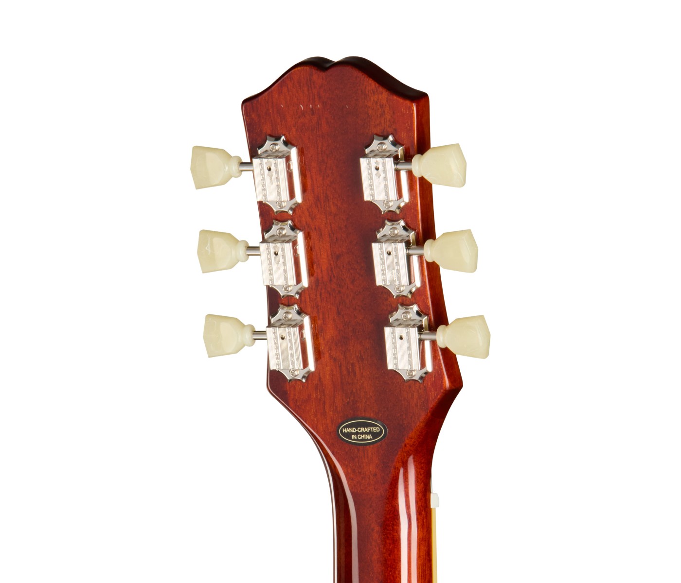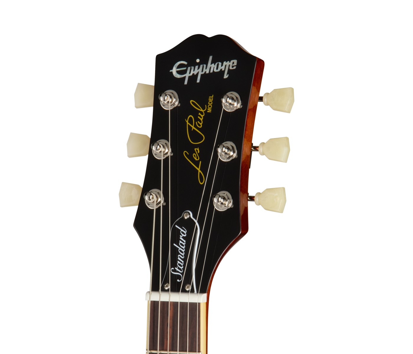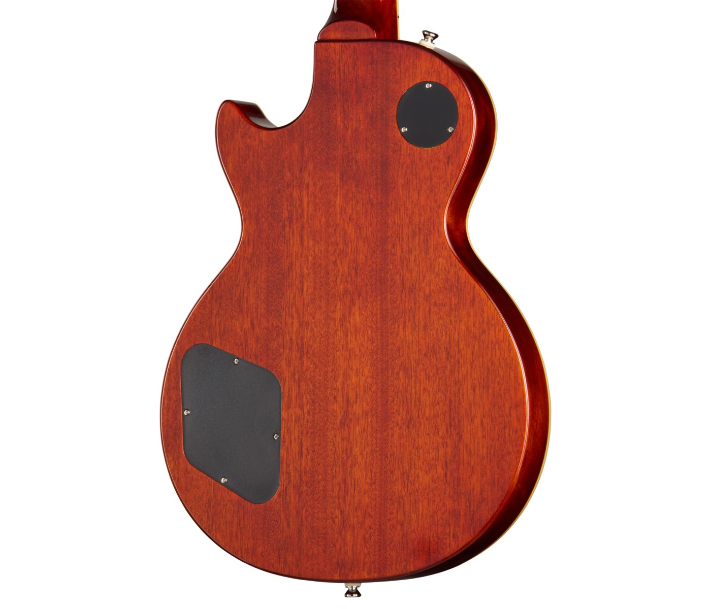 The Les Paul Standard 50s Figured is crafted with a mahogany body and a maple cap topped with a highly figured maple veneer, producing a rich, warm midrange tone with bright, articulate highs. A mahogany neck with a 1959 Rounded Medium C-profile and long neck tenon provides exceptional stability and sustain, while the rosewood fingerboard with 22 medium jumbo frets ensures smooth playability. Epiphone’s Vintage Deluxe tuners, Graph Tech® nut, and LockTone™ Tune-O-Matic™ bridge with Stop Bar tailpiece deliver superior tuning stability. Under the hood, the guitar features a pair of Epiphone ProBucker™ humbuckers—a ProBucker 1 in the neck and a hotter ProBucker 2 in the bridge—wired with CTS® pots and 50s-style wiring for vintage tonal character.