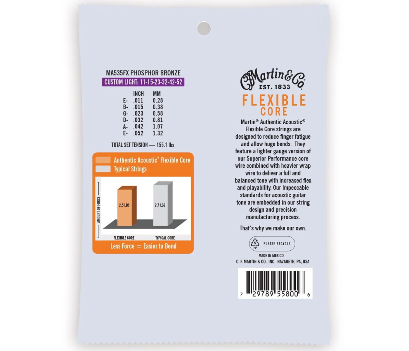 Martin MA535FX Authentic Acoustic Guitar Flexible Core Phosphor Bronze - Custom Light .011-.052