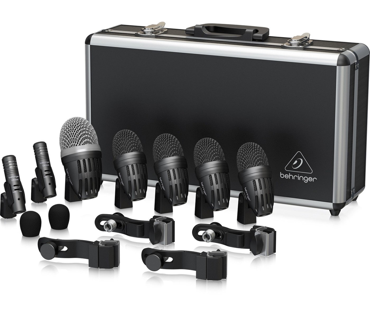 Studio-quality Behringer BC1500, a set of 7 premium microphones tuned and matched to capture every nuance of a full drum kit, includes wind noise filter for overhead mics, clamps for tom/snare mics and 5/8” threaded adapters – all in an easy carry case. Rugged die-cast construction makes BC1500 withstand rigors of everyday long recording sessions. Visit your local authorized dealer today and see just how easy and affordable it is to hop on the BC1500 bandwagon .