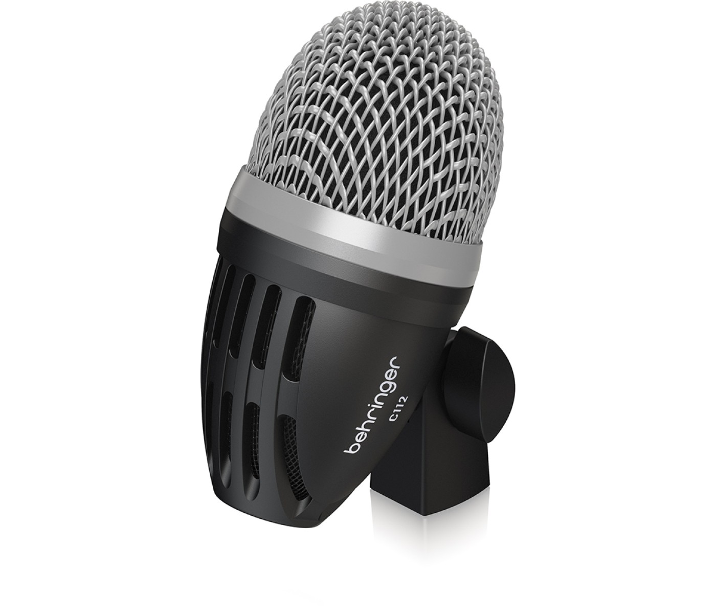 The C112 is a pro-quality large diaphragm dynamic capsule especially tuned for full response of kick drums. Mount this mic onto a short microphone stand, then position it just inside kick drum opening. Aim the mic directly at beater for more attack, or towards the far edge of the drum for a more resonant tone.