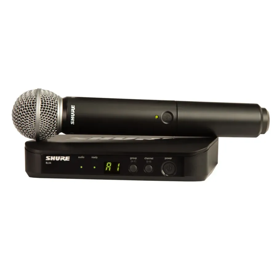 Searching for a rock-solid wireless handheld mic system? Look no further. The Shure BLX24/SM58 delivers first-class performance, with 14 hours of continuous use with two AA batteries and a 300-foot transmission radius. On top of that, 1-touch QuickScan frequency selection ensures easy setup. The BLX24/SM58 supplies top-notch sound and hassle-free operation for presentations and performances alike.  Whether you're performing or giving a presentation, the BLX24/SM58 ensures top-notch sound and hassle-free operation. For all your audio needs, visit Sadek Music for the best in wireless microphone systems!
