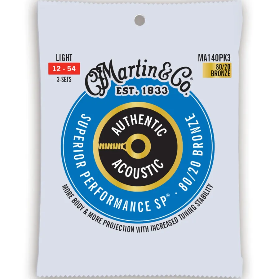 Martin Strings MA140PK3 3-Pack Authentic Acoustic Guitar SP 80/20 Bronze Light - 0.12 - 0.54