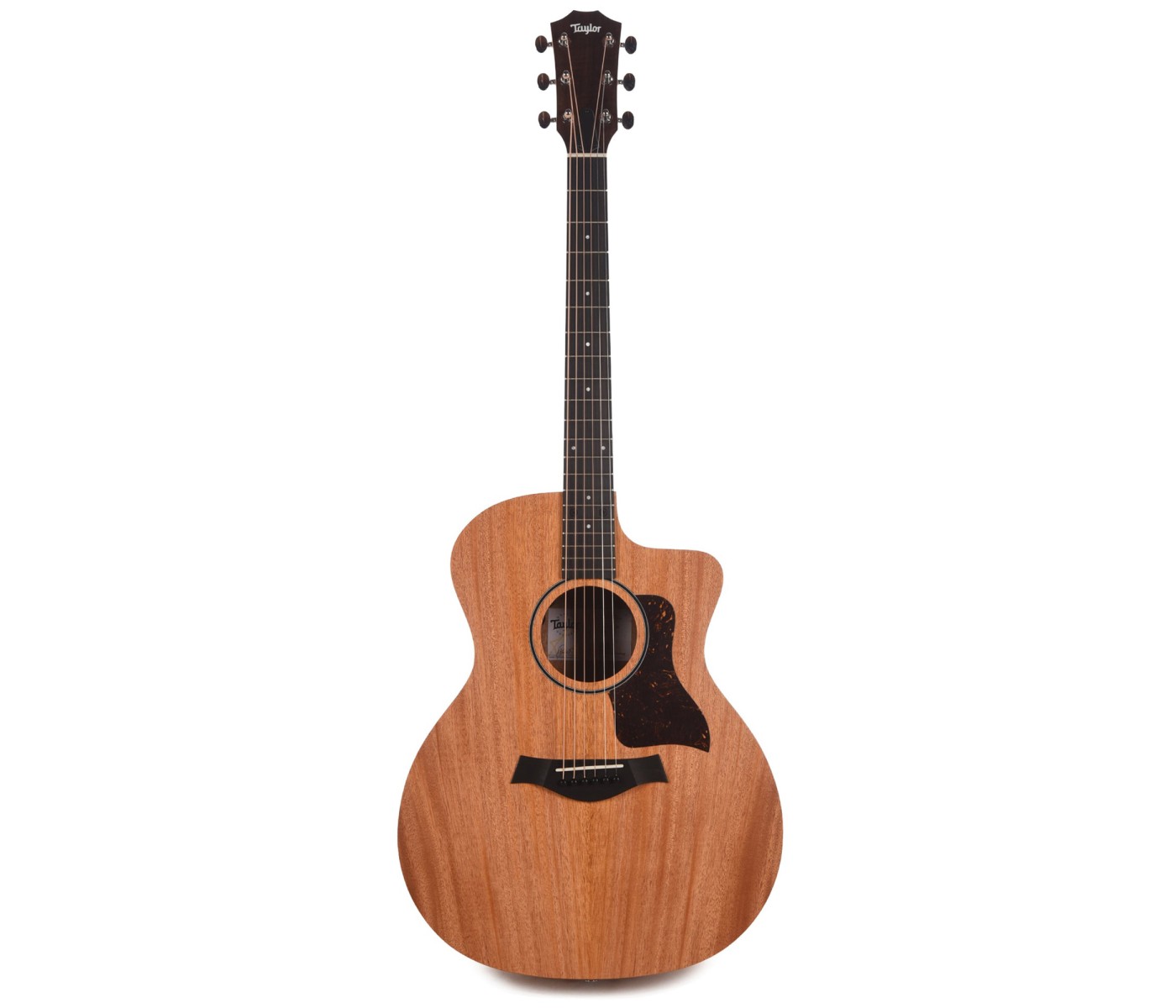 Taylor’s unique voicing architecture enhances volume and sustain while ensuring harmonic consistency across the ebony fretboard. A slim, heelless maple neck delivers the smooth, familiar feel Taylor players expect. Subtle visual touches — including 4mm dot inlays, a single-ring black rosette, chrome tuners, and a faux-tortoiseshell pickguard — maintain a classic, elegant look.
