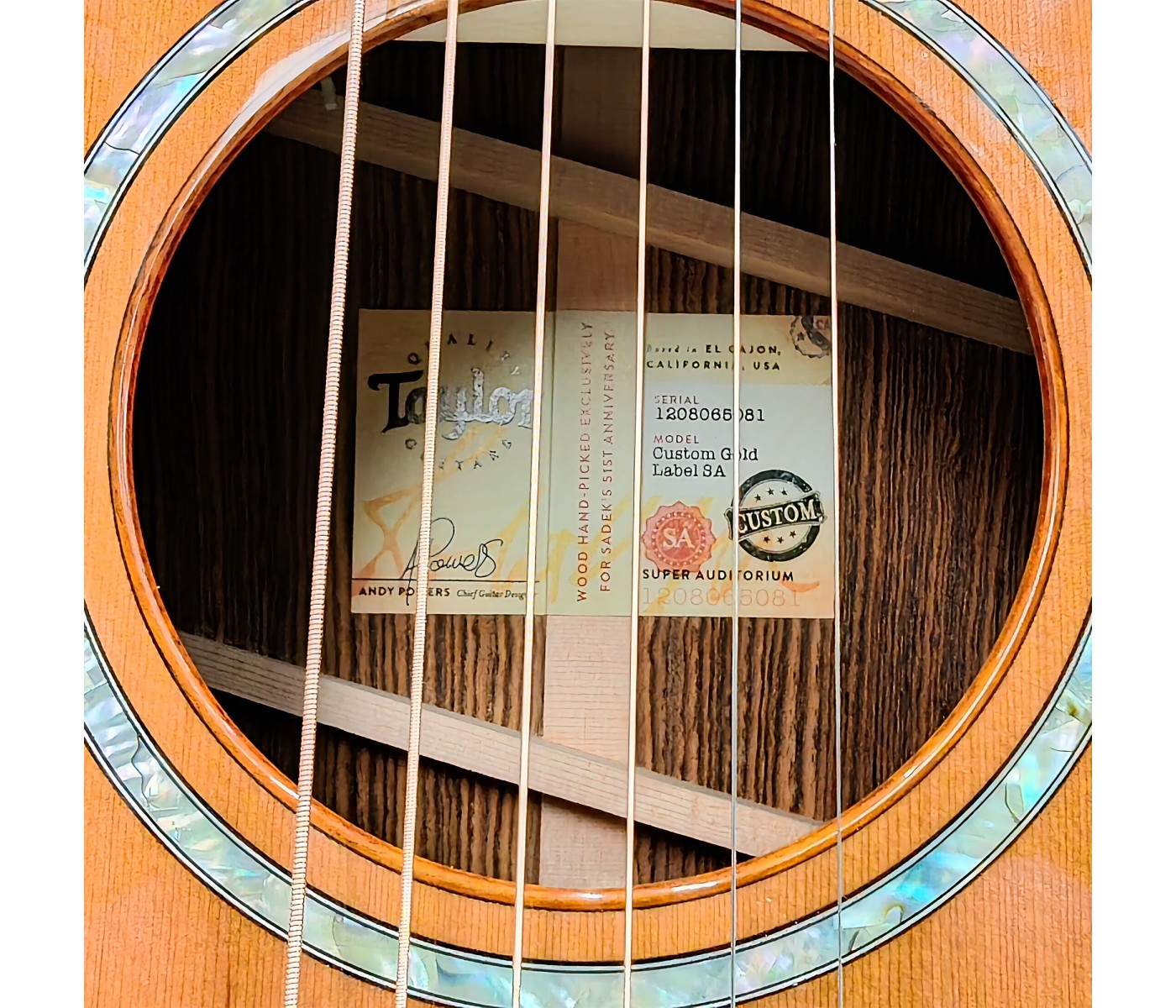 Performance & Playability Outfitted with Gotoh 510 Antique Gold tuners for exceptional tuning precision and Taylor’s Expression System 2 electronics, this instrument is equally at home on stage or in the studio. Performance Bracing delivers a balanced, powerful voice with remarkable projection and clarity across the entire frequency spectrum. Exclusively offered by Sadek Music, this Custom Gold Label Grand Auditorium stands as a rare expression of tone, beauty, and craftsmanship—designed for discerning players and serious collectors alike.