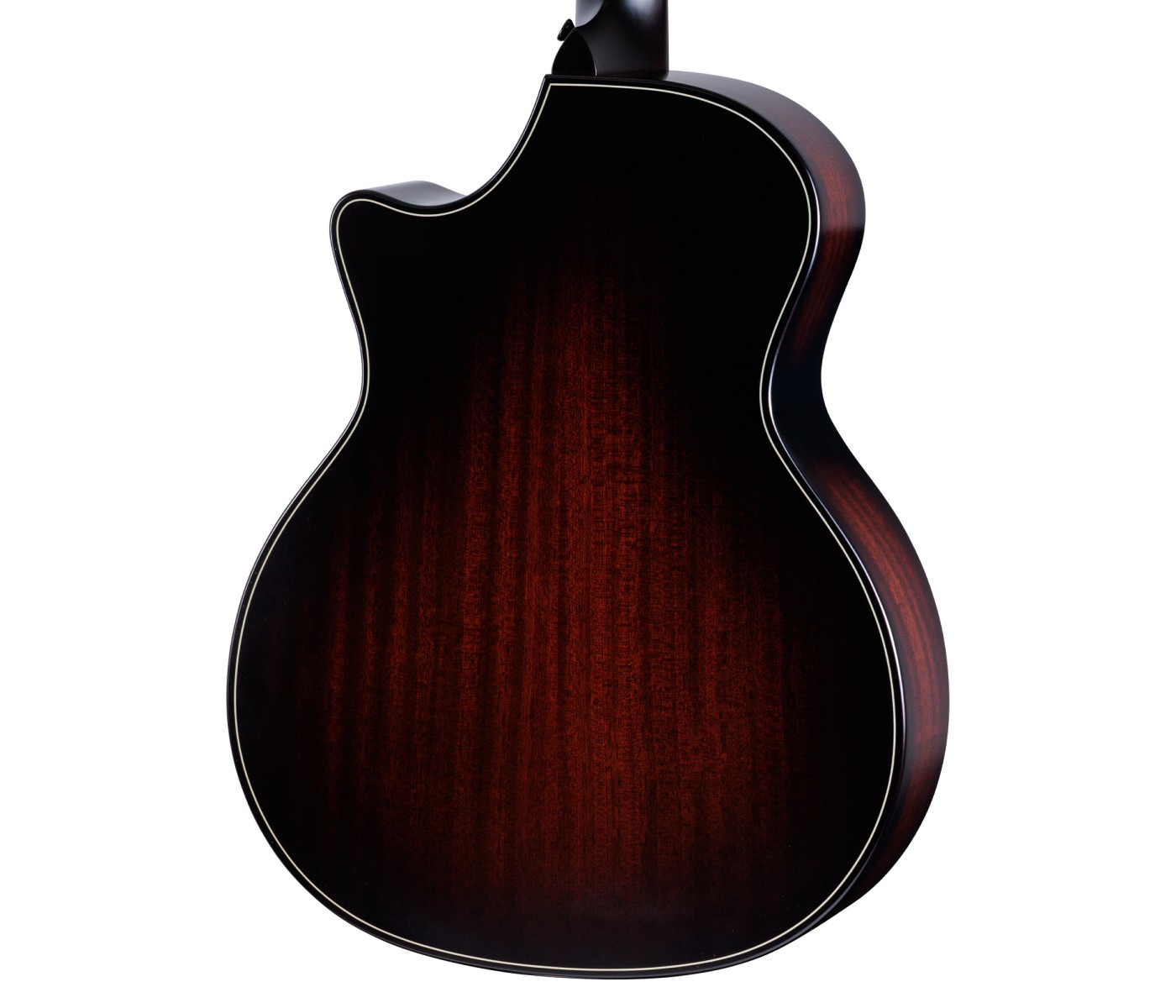 - Builder’s Edition iteration of Taylor’s Next Generation 324ce, featuring chamfered edges, a beveled cutaway, and a comfortable armrest