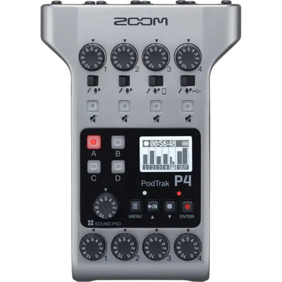 Zoom P4 PodTrak 4-Input Ultimate Recorder for Podcasting- 2 Years Warranty